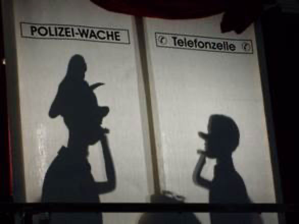 Dieser Auftrag stellte uns vier Puppenspieler vor eine schöne, aber auch große Herausforderung: Welche Thematik wollen wir vermitteln? Welche Inhalte brauchen Flüchtlingskinder? Welche Altersgruppe wollen wir ansprechen? Und vor allem: Wie vermitteln wir die Botschaften über die Sprachbarrieren hinweg? Es dauerte nicht lange und wir kamen zu der Überzeugung, es können nur die grundlegenden Verhaltensweisen im Straßenverkehr sein!. In nur sechs Wochen wurde ein Stück für Kinder bis zu 10Jahren entwickelt und Kulissen nebst Hilfsmitteln (Bildtafeln) hergestellt. Der normale Spielbetrieb ging natürlich weiter und so mussten wir bei jeder sich bietenden Gelegenheit proben. In den zahlreichen Probestunden – weit über die Dienstzeit hinaus - wurde uns mehr und mehr klar, dass die Kinder gar keine oder nur sehr geringe Kenntnisse der deutschen oder englischen Sprache besitzen und Texte könnten unmöglich in zig Sprachen übersetzt werden. Völlig nonverbal zu spielen ist aber auch sehr schwer und für uns ungewohnt. Da das Stück mit viel Sprache zu kompliziert wird, wollten wir nur zu Anfang ein paar einleitende Worte sprechen (übersetzen lassen) und diese mit Texttafeln unterstützen. Wir erstellten letztendlich ein stark sprachreduziertes Stück.. die Bilder sollten für sich selbst sprechen.