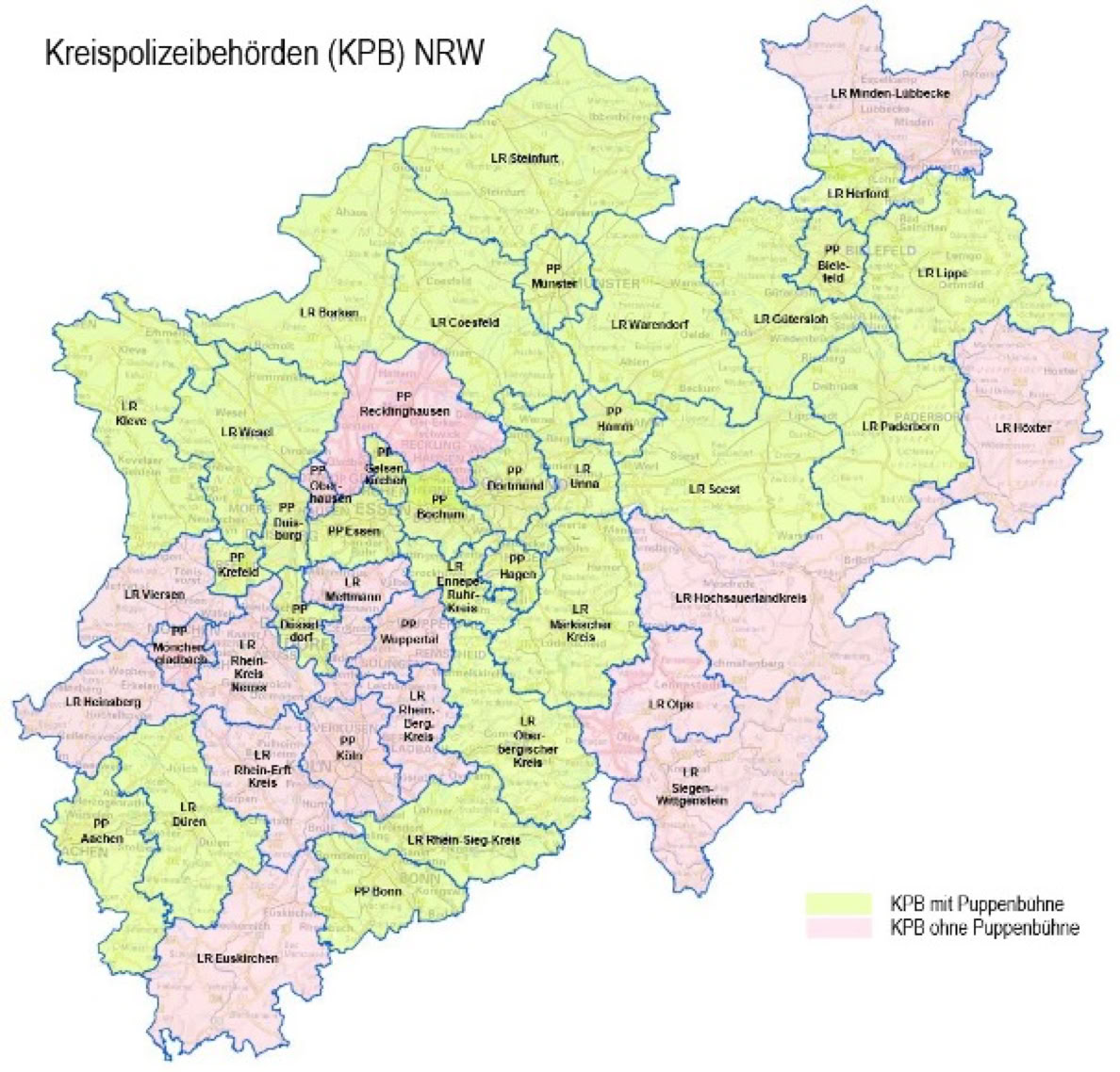 Die Besonderheit in NRW ist, dass durch Polizeipuppenbühnen nur verkehrspräventive Puppenstücke gespielt werden, weil die Bühnen den Direktionen Verkehr angegliedert sind.