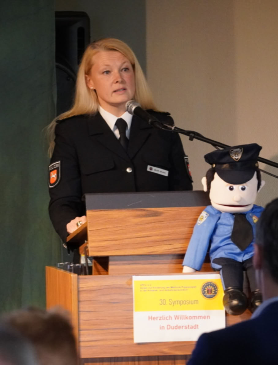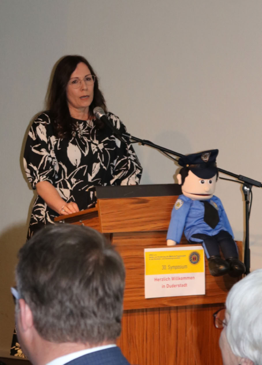 Das Symposium wurde am 25.04. abwechslungsreich, wertschätzend und gespickt mit persönlichen Erfahrungen eröffnet von der Polizeipräsidentin der PD Göttingen Tanja Wulff-Bruhn, dem Bürgermeister der Stadt Duderstadt Thorsten Feike, der Vorsitzenden des VPKV Kerstin Hassel, der Ehrenvorsitzenden des VPKV Annegret Krauskopf und der Puppenspielerin der PPB Göttingen Gudrun Nixdorff.