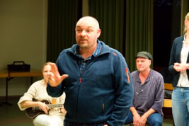 Die Teilnehmer*innen in WS 2 lauschten ganz gebannt auf die Ausführungen, theoretischen Grundsätze und Erfahrungen des Michael Hepe zum Thema „Stückentwicklung“.