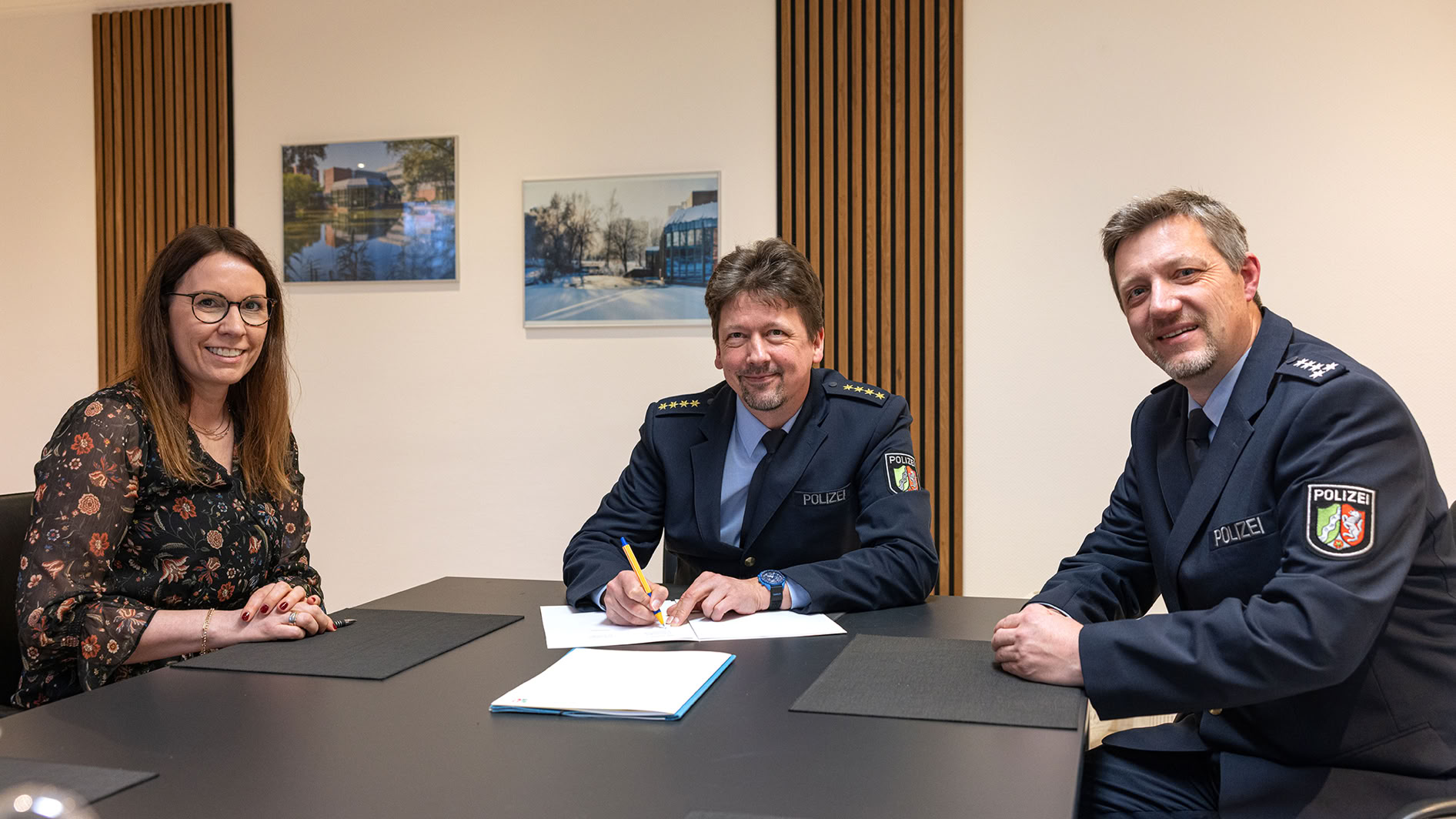 Zusammen mit dem Direktor des LAFP, LPD Lothar Sandkühler, und EPHK Boris Weber vom Dez. 25.2 des LAFP durfte unsere Vorsitzende, Kerstin Hassel, den Kooperationsvertrag unterzeichnen.