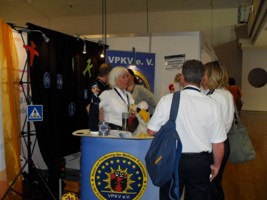 Eine endlos laufende Power-Point-Präsentation (über die Polizeipuppenbühnen in Berlin den VPKV e.V.) sorgte zusätzlich für Interesse, so war der Zulauf von Besuchern am VPKV-Stand fast durchgängig sehr gut. Von vielen Standaufstellern wurden wir herzlichst begrüßt und eindringlich ersucht im nächsten Jahr wieder dabei zu sein.