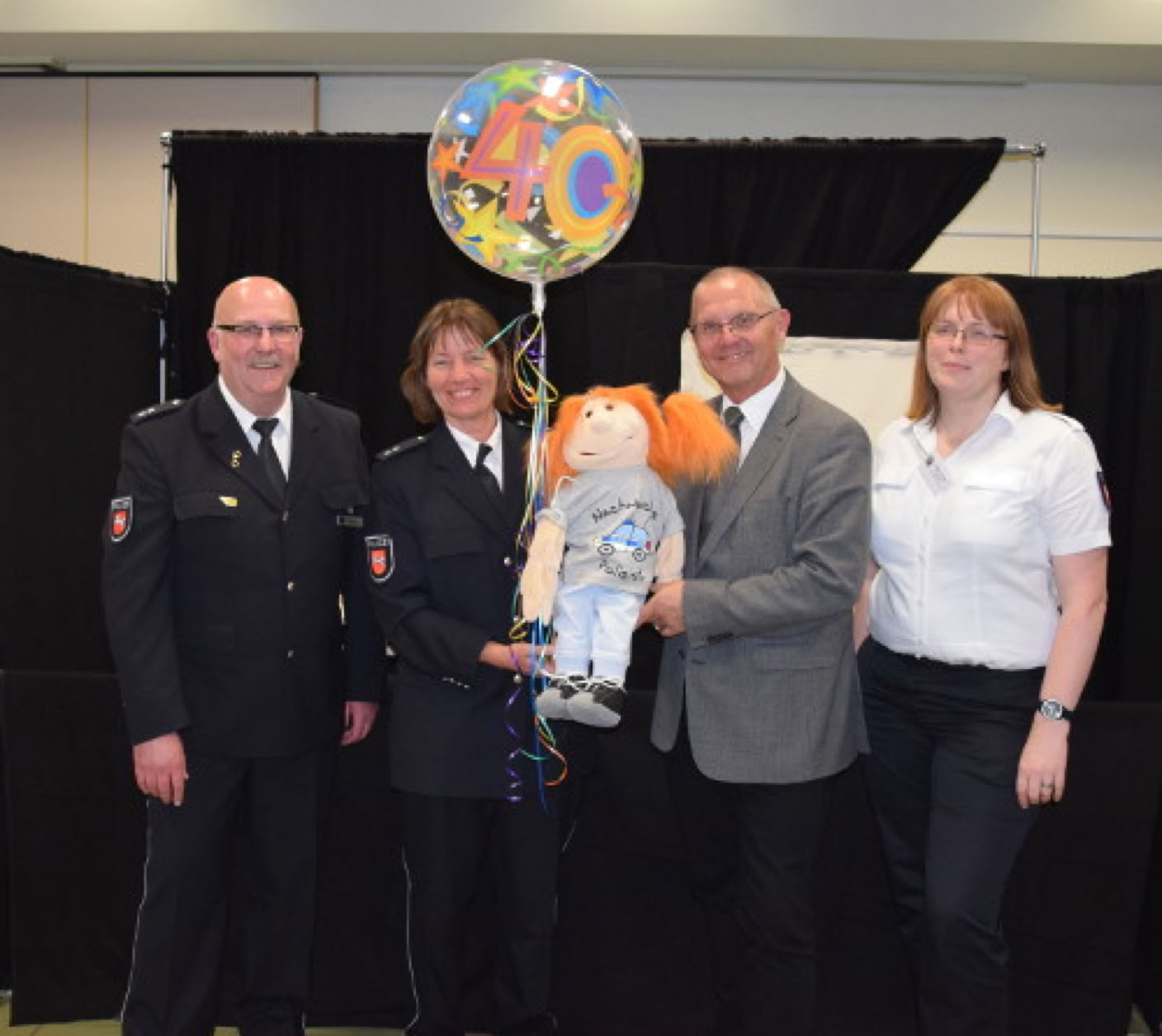 „Wer in die leuchtenden Augen der Kinder blickt, erkennt sofort welch großen Beitrag diese Bühne seit mehr als vier Jahrzehnten zur Präventionsarbeit der Polizeidirektion Göttingen leistet.“ Mit diesen Worten würdigte Polizeipräsident Uwe Lührig am vergangenen Donnerstag, dem 19. April 2018, die Präventionspuppenbühne der Polizeidirektion Göttingen für 40 Jahre erfolgreicher Arbeit. Damit ist die im Jahr 1977 ins Leben gerufene Göttinger Bühne die dienstälteste Polizeipuppenbühne Niedersachsens. Im Rahmen der Jubiläumsveranstaltung, welche die Behörde gemeinsam mit dem Verein zur Förderung des Puppenspiels in der Kriminal- und Verkehrsprävention (VPKV) e.V. ausrichtete, ehrte er zudem langjährige Mitarbeiterinnen und Mitarbeiter der Bühne für ihr Engagement für den Erhalt und die Weiterentwicklung des polizeilichen Puppenspiels. Die Veranstaltung war zugleich Auftakt für das 26. Symposium des VPKV e.V., eine mehrtägige Fortbildungsveranstaltung für Polizeipuppenspielerinnen und -puppenspieler. Weitere Festredner waren Prof. Dr. Reinhilde Stöppler, Vorsitzende des VPKV e.V., sowie Axel Brockmann, Landespolizeipräsident des Landes Niedersachsen.