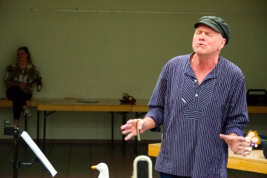 Die Teilnehmer*innen in WS 2 lauschten ganz gebannt auf die Ausführungen, theoretischen Grundsätze und Erfahrungen des Michael Hepe zum Thema „Stückentwicklung“.