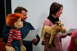 Im WS 1 „Spielfreude: Puppenspiel mit Spaß dabei – ist doch keine Hexerei!“ und im WS 3 “Sprache & Stimme“ ging es schnell praktisch zur Sache.